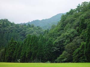 | 昔、といってもほんの40年ほど前までは、朽木の自然の恵みが存分に活かされた、豊かな暮らしがありました。 (山本さん) 昔はな、ここら辺りは杉の木で立派に生活できたんや。朽木の93%は山やもんな。杉の木は昔、金の棒といわれて、売るとすごい高かったんや。その時の材木景気でごっつい家も建てたりな。 |