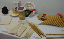 | ●生活用品 ヨシを身近な生活用品に利用したデザイン。葦ペン、インセンススタンド、コースターなど、特別な技術や道具を使わないで誰もが工夫し制作できるよう考えている。工作教材にも発展させることができる。 |