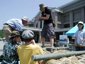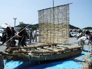 | 2002年6月2日(日)、みんなから「浮くはずがない、沈む」といわれ続けていたヨシ舟が堂々と浮きました!!しかもはじめて試作した舟で!新聞でも大きく取り上げられましたが、ここは東近江水環境自治協議会の丹波会長から届いた臨場感あふれるメールを紹介します。(丹波さん、勝手に載せてごめんなさい) |