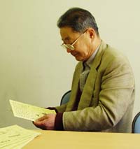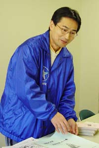 村井さん 「こんな近くで売っていたのか!と思いました。それもわたしは八幡の在住なのに。ばかばかしいというか、拍子抜けしました。しかも、地域の祭りに使うヨシ松明を買いに西川さんのところへは以前に行ってたんですから。ヨシを売っているのは知ってたんですけど、まさか細工物、工芸品まで売っているとは知らなかったんです。」 「そして、話をさせてもらっているうちに、総合学習で何かヨシで体験学習ができんやろかと相談にのってもらってたんです。ヨシペンづくりやヨシの染色のこととかをお聞きして、いま、今年1年どう取り組んでいこうか、学校で話をしているところなんです。」 |