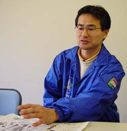 | 村井さん 「当然すると思います。総合学習もまず興味をもてるかどうかが大事です。いま話し合っているのは、子どもたちの興味がボランティアにあったら、ヨシもボランティア体験のひとつとして組み入れようかと思っているんです。大きなボランティアという取り組みの中でヨシ刈り体験とか老人介護とか。子どももグループ分けして、テーマもいくつかの中から選考できたほうが子どもにとってもいいかなと思う。」 |