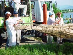このヨシ舟は8月10日に沖島に渡ります。この日はテレビの生放送番組も加わって、すごいビッグなイベントになりそうです。 |