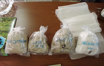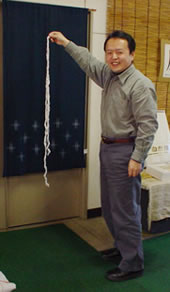 育ちすぎると繊維が太くなってしまいますので、1メーター2〜30センチぐらいの時が質が良いのです。作れば年に3回ぐらいできますが、中国や韓国では年1回の収穫です。だいたい田んぼのサイクルと似ていて、3月〜4月に種まき、で7月後半ぐらいに収穫になります。 このヘンプ(大麻)は、古くから繊維や種子を採るために栽培され、最も古いもので縄文時代の鳥浜遺跡(約1万年前)から大麻繊維や種子が発見されています。それから、大麻は、三草四木(三草:麻、紅花、藍 四木:桑、漆、茶、こうぞ)の一つとして古くから人々の生活に利用されてきました。 |